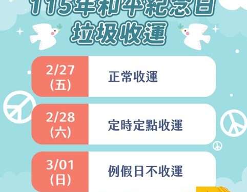 115年和平紀念日垃圾收運圖卡 和平紀念...