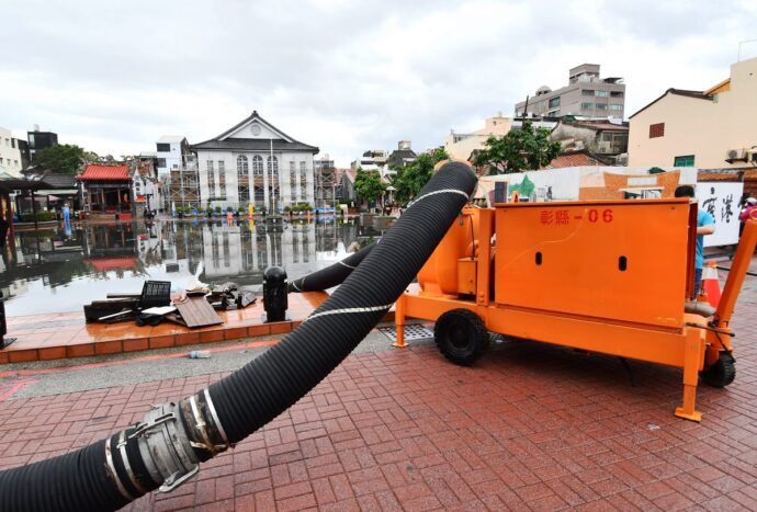 縣長王惠美表示,今天一早彰化地區強降雨不斷,以鹿港地區來說,每小時降雨量約達87.5 mm,福興鄉更高達102.5mm,導致部分低窪地區積水,所幸這幾年來,縣府跟各地方公所共同努力,在地下排水、區域排水各方面整治,都有所成果,經由快速啟動抽水站等各項措施,讓積水消退速度也很快,縣府針對易積水地區就有做預抽的作業,所以,今早雖路面積水約達60 cm,但是,消退的速度非常快,家戶淹水的部分也比往年來的少,鹿港地區以鹿港老街屬該地區最低窪,附近的水遇雨就會往老街匯集導致積水,即時啟動在鹿港公會堂原先就有定點設置鹿港抽水站,以及臨時加裝的移動式抽水機,加上鹿港溪旁也有以6千多萬元建置的文開抽水站,快速的加以抽水,每9分鐘可以抽走一個游泳池的水量,讓積水快速的消退。