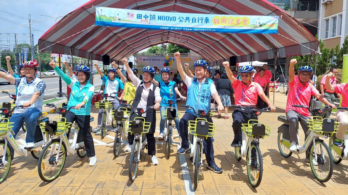 田中鎮長蕭淑芬表示,今天是田中的大事情,MOOVO公共自行車正式啟用,非常感謝彰化縣長王惠美大力支持,以及縣議員們支持政策經費,田中高鐵、臺鐵距離雖然只有短短3公里,但是很需要MOOVO公共自行車做點跟點的串聯,這也是所有鎮民引頸期盼的,相信未來使用率一定會非常高,田中是一個好地方,希望大家不管是透過MOOVO公共自行車,還是其他交通工具,大家都能夠來到田中,愛上田中,歡迎大家。