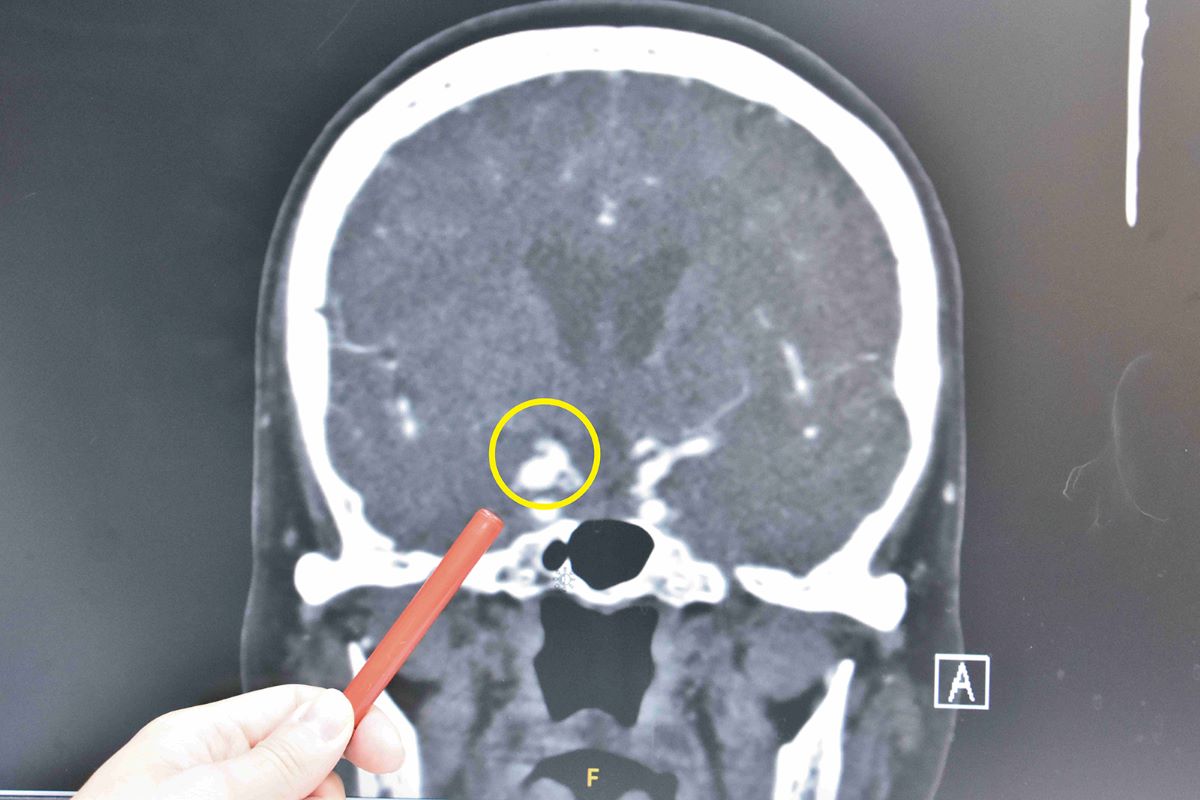 ▲曾姓婆婆的動脈瘤有壓迫到視神經或動眼神經,在破裂出血造成昏迷前及時發現。(圖/彰基提供)