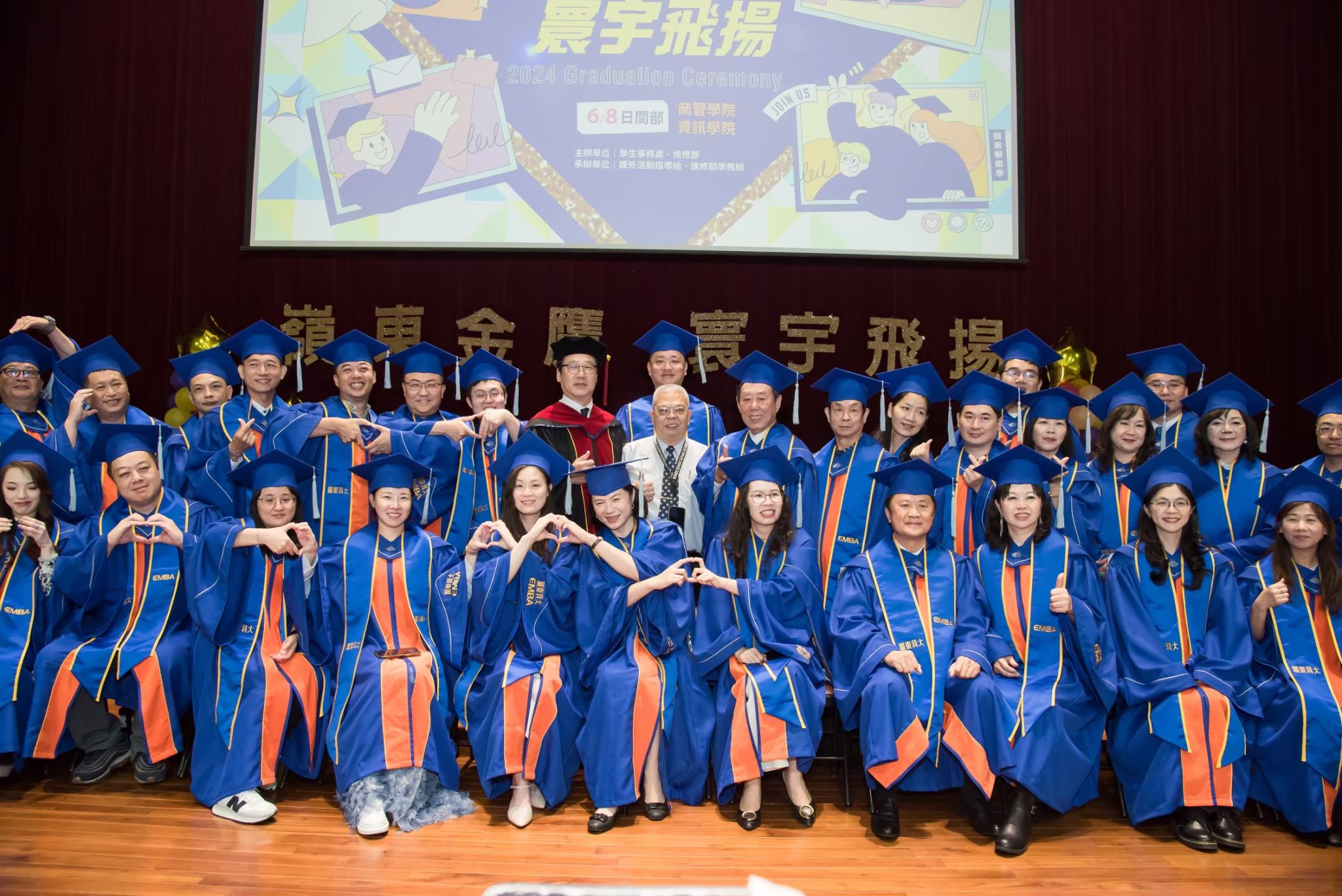 ▲今年EMBA畢業生身著由服飾設計系設計製作的全新碩士學位服。(圖/嶺東科大提供)