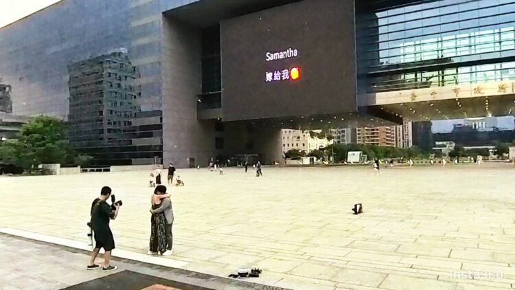 台中市政府前廣場LED電視牆建置迄今14年,首例市民申請播放求婚影片,在1300吋大螢幕的助攻下,求婚成功!當日現場練舞的民眾們見到電視牆播放告白影片,不約而同為佳偶喝采並給予祝福。秘書處表示,申請人於預定播放日之前10日提出申請並繳付相關費用後,即可透過巨型螢幕播放影片,留下美好回憶。