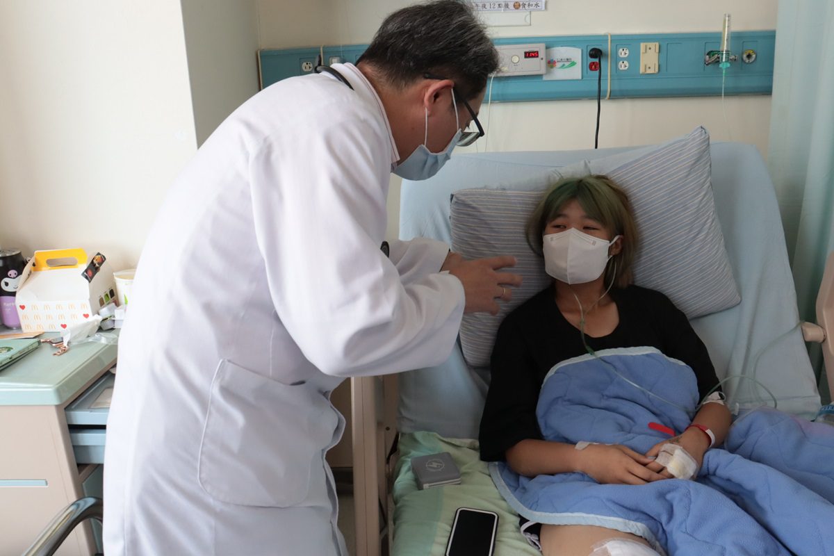 躺在病床上的黃女說,她日前騎腳踏車自摔,左胸及四肢疼痛才就醫,本想不用住院,沒想到自己竟有先天性疾病。