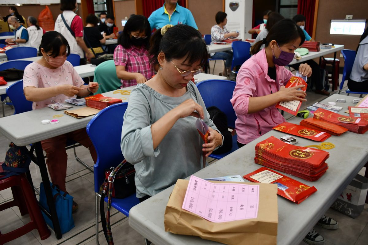 市長林世賢表示,市公所每年發放兩次禮金,分別是重陽節與春節的敬老禮金,市公所重楊節發放500元,春節發放6000元,每次現金點鈔都大工程,都是靠著志工、里幹事、員工一起點鈔,非常感謝點鈔大隊的付出。林世賢隨後也在社會課長吳澤生等人陪同下,前往光華里辦公處和永福社區活動中心等處,發放敬老禮金與長壽麵線給長輩,並提早向大家賀節。