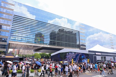 現場人潮洶湧,親臨感受賽車魅力。台北李先生表示,府前派對搭配周邊有吃又有玩,非常有趣,很幸運買到票可以親臨現場。即使沒買到票,市府也很貼心提供大螢幕供大家觀賞。