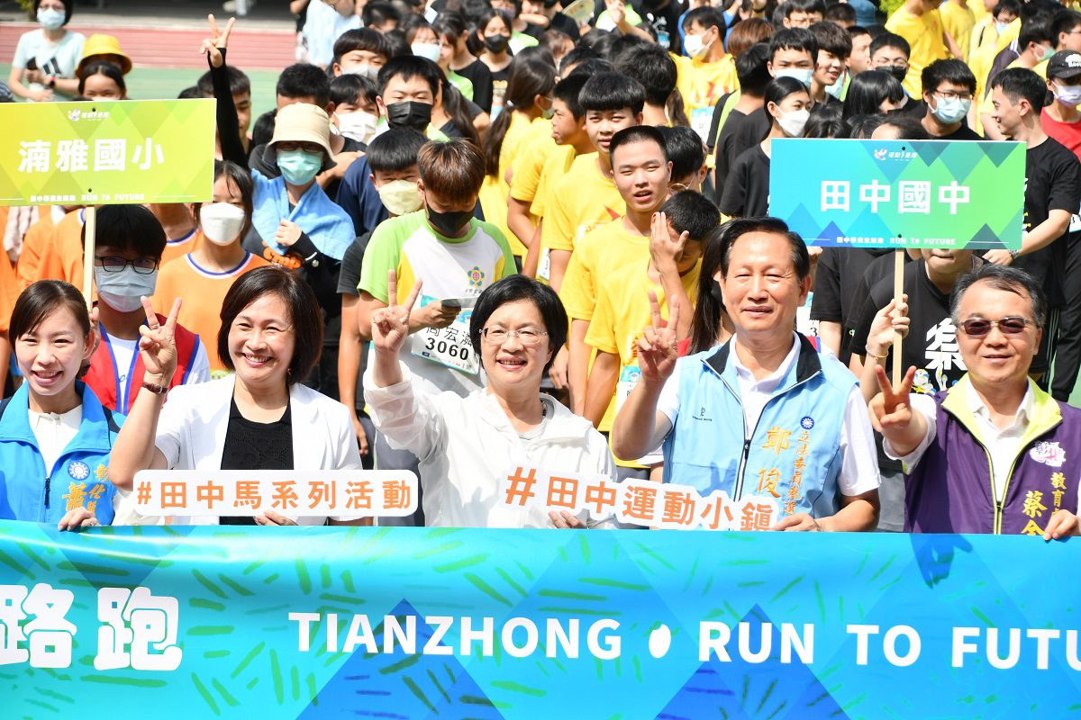 縣長王惠美表示,全國最有人情味的馬拉松就在田中馬拉松,田中鎮有好山好水好人情,這次路跑路線沿著美麗的八堡圳廊道及田中高鐵園區,運動能讓大家更加健康,透過雙腳讓大家體驗在地特色,讓畢業生在畢業前夕,透過「路跑精神」,體會未來能昂首闊步、克服困難,邁向成功的人生,特別感謝所有師長們對孩子的用心付出,也感謝文興高中家長會提供孩子們一人一支冰棒,讓畢業生完賽後有幸福快樂的氛圍,祝福所有畢業生,鵬程萬里,迎向未來。