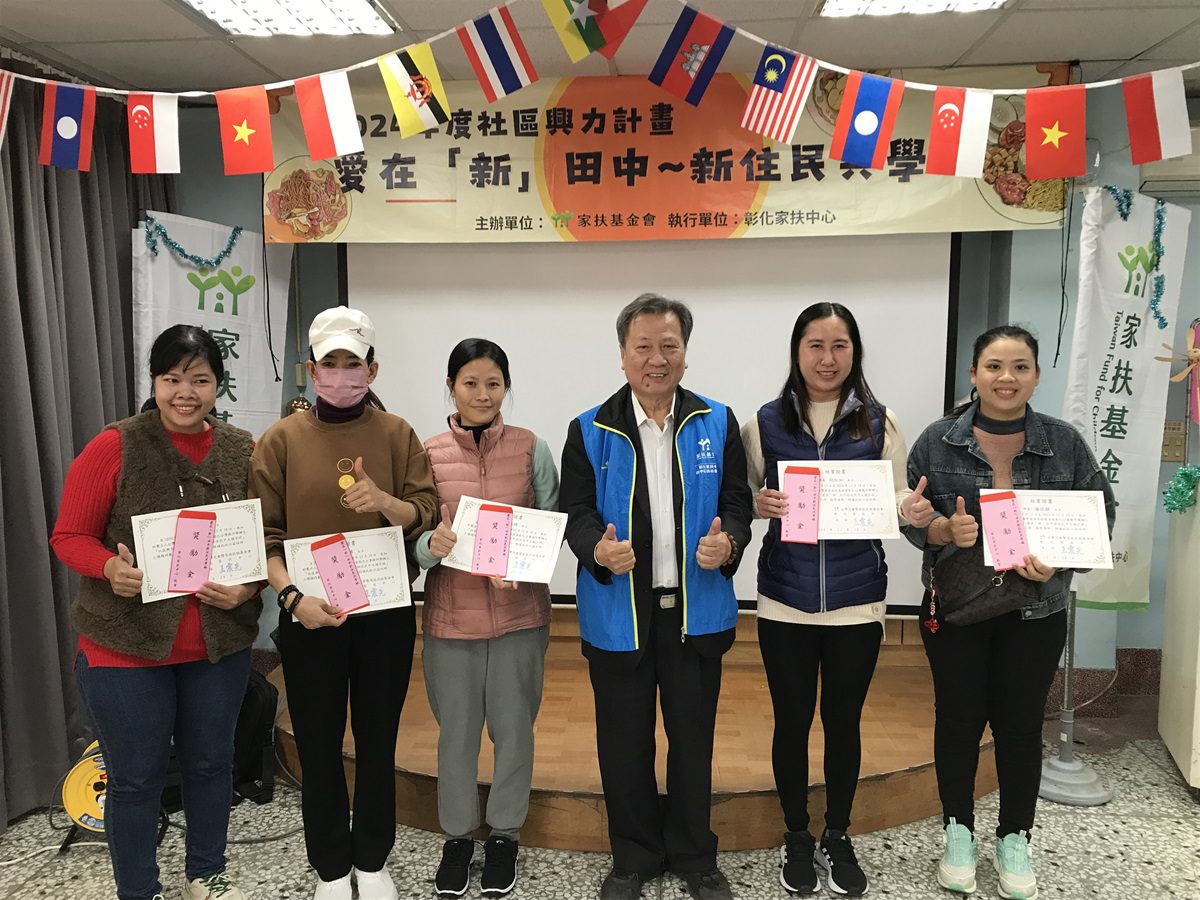 彰化家扶主任王震光表示,家扶今年開始在田中試行開辦新住民中文識字班及親子共學團體,期待透過多元的內容與豐富的文化活動,幫助新住民家庭開展更多交流互動的機會。王震光主任另指出,家扶扶助的新住民媽媽有些因經濟因素已超過6年以上沒回到他們的母國,明年度也將試著為2-3戶家庭籌措助返鄉的經費,讓她們能帶著孩子一起與娘家親友團聚。