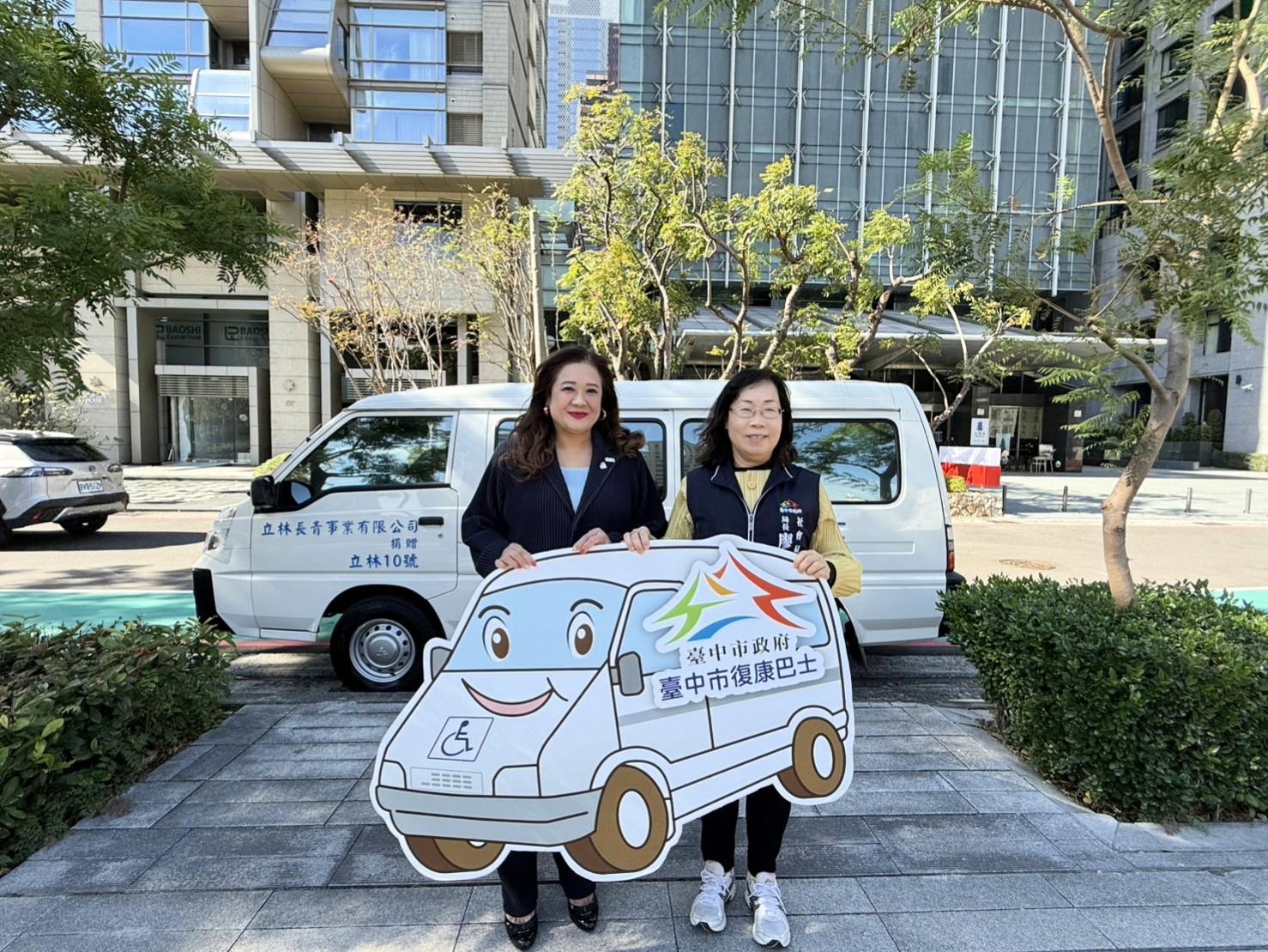 身障朋友行的便利更進一步。民國113年最後一天,立林長青事業有限公司送給台中市山線地區的鄉親一份新年禮物,今(31)日捐贈第10輛復康巴士「立林10號」,由社會局長廖靜芝代表受贈,未來將服務豐原、石岡、新社、東勢、和平、潭子、后里與大雅的身心障礙者。