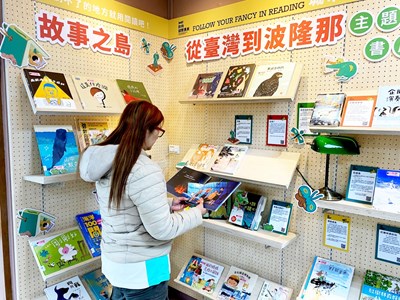 中市圖表示,為呈現台灣創作躍上國際舞台,特別精選「義大利波隆那兒童書展」台灣館的書籍共60本,規劃「故事之島:從台灣到波隆那」主題書展。以「Taiwan Story Island」(譯:台灣故事島)為主題,書展分為「海洋」、「年度推薦書」兩大主題,展現台灣原創書籍豐富多元的創作能量。書展於總館及分館共12館同步展出,歡迎民眾到圖書館翻閱原創故事,品讀台灣之光。