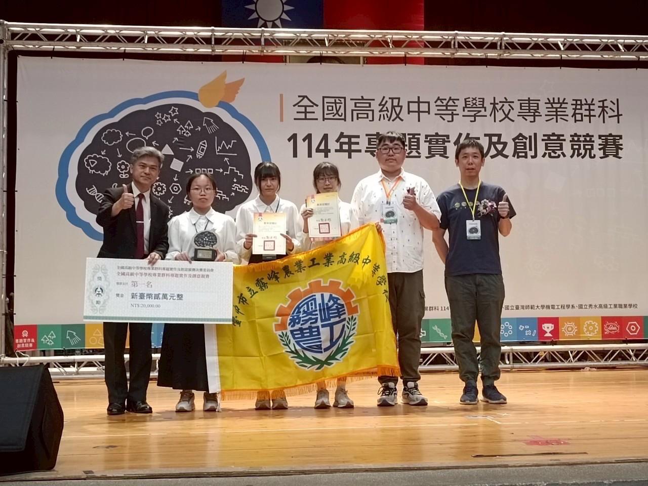 台中技職學生大放異彩,全國高級中等學校專業群科114年專題實作及創意競賽結果出爐,台中共有35件作品晉級5月4日決賽,在創意組與專題組各四件作品勇奪8項全國第一,其中霧峰農工、大甲高工與明德高中橫掃電機電子群、機械群與家政群,分別在創意與專題組拿下雙料冠軍,表現令人刮目相看;另獲得3件全國第二名、1件第三名以及8件佳作,展現台中技職教育的堅強實力。
