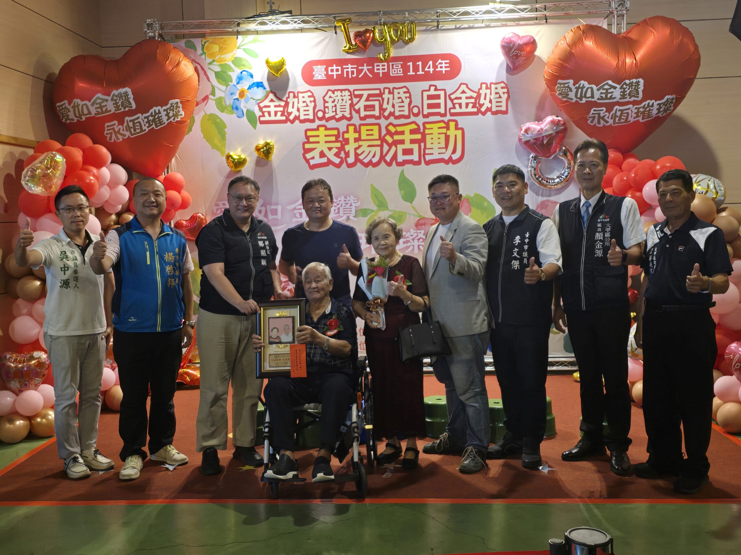 今日活動,不僅弘揚正確的家庭價值觀,讓愛與責任代代傳承,也讓整個社會更加溫馨祥和。典禮除受表揚的伉儷外,也邀請各界民意代表與地方人士共襄盛舉。現場不僅有熱鬧的祝賀氛圍,更有濃濃的人情味,讓所有來賓一同見證跨世紀愛情的可貴。