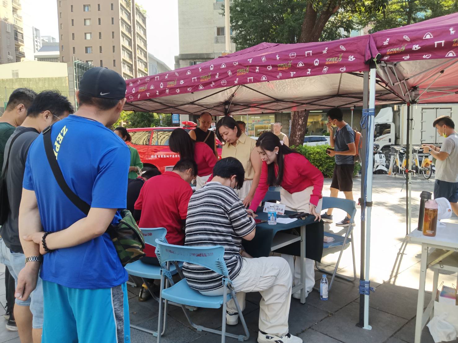 為了感謝熱心民眾的響應,主辦單位準備了多項愛心回饋。捐血250cc可獲贈全聯禮券200元;捐血500cc則可領取500元禮券,並加贈「雍華閣熊寶寶」紀念品,另有限量咖啡禮盒提供,吸引不少民眾踴躍排隊。現場氣氛熱絡,溫暖氛圍瀰漫在陽光下,展現出社會最真摯的善意。主辦單位呼籲,台灣每日用血需求龐大,血庫長期仰賴民眾定期捐輸維持。「一袋熱血,一份希望」,捐血不僅是善舉,更是社會責任。三位核心號召者蔡鈴蘭、施秉慧與蔡佳欣一致強調,希望藉由今天的行動,能激發更多人持續投入捐血行列,讓這股愛心暖流不間斷地流動,照亮更多需要的生命。▲熱心民眾於現場填寫捐血基本資料。