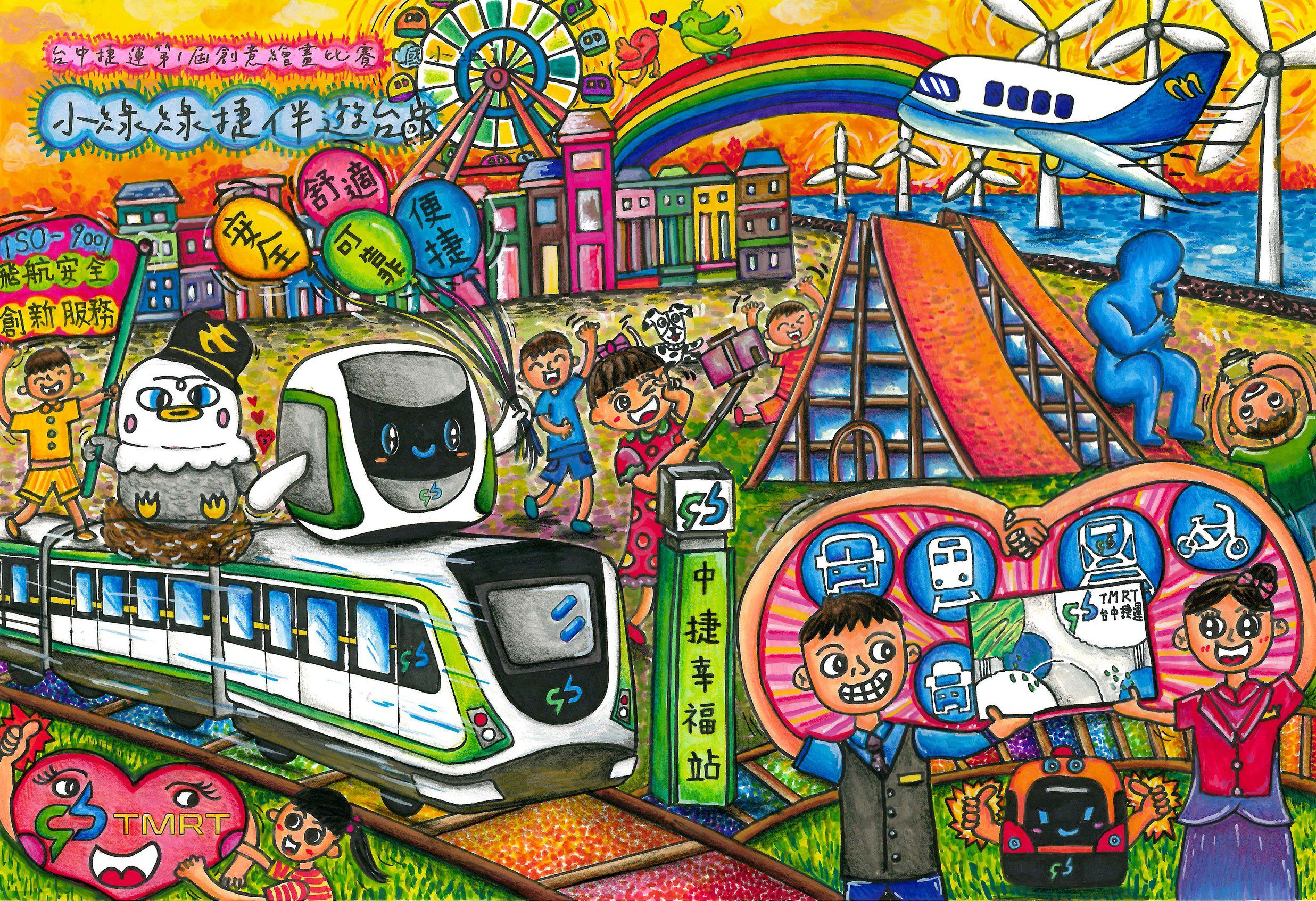 台中捷運公司今年特別攜手華信航空,以「小綠綠捷伴遊台中」為主題,舉辦首屆兒童繪畫比賽,邀請小朋友透過畫筆描繪對台中景點的熱愛與想像,搭配「雙十國慶,晚會在台中」盛事發揮創意。比賽共吸引539件作品參與,最終評選出各組優選3名及佳作10名,得獎作品今(1)日公布於中捷官網與粉絲專頁。