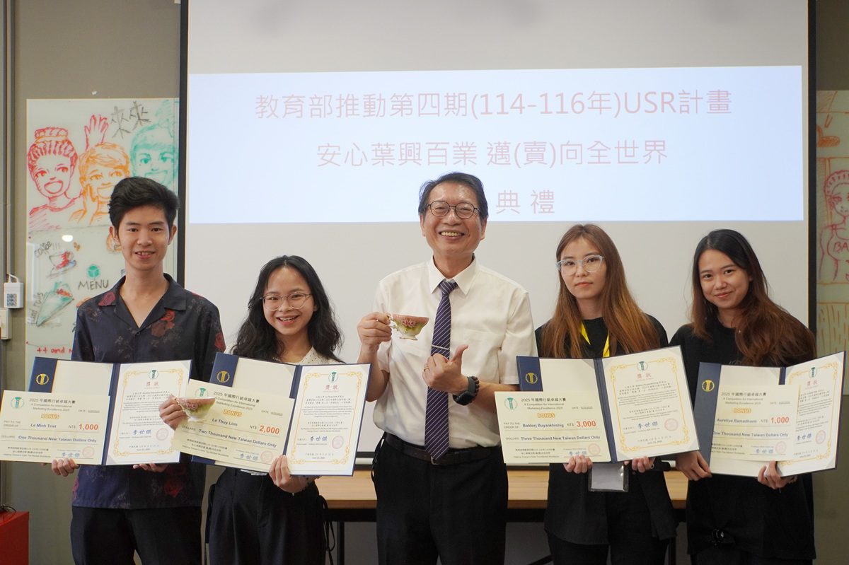 大葉大學USR計畫「安心葉興百業 邁(賣)向全世界」辦理「臺灣好茶全球通:2025國際行銷卓越大賽」,鼓勵學生提出創新且具執行力的國際行銷策略,助力台灣茶產業進軍全球市場,10月1日頒獎,蒙古學生Batdorj Buyankhishig榮獲冠軍,越南學生Le Thuy Linh獲頒亞軍。
