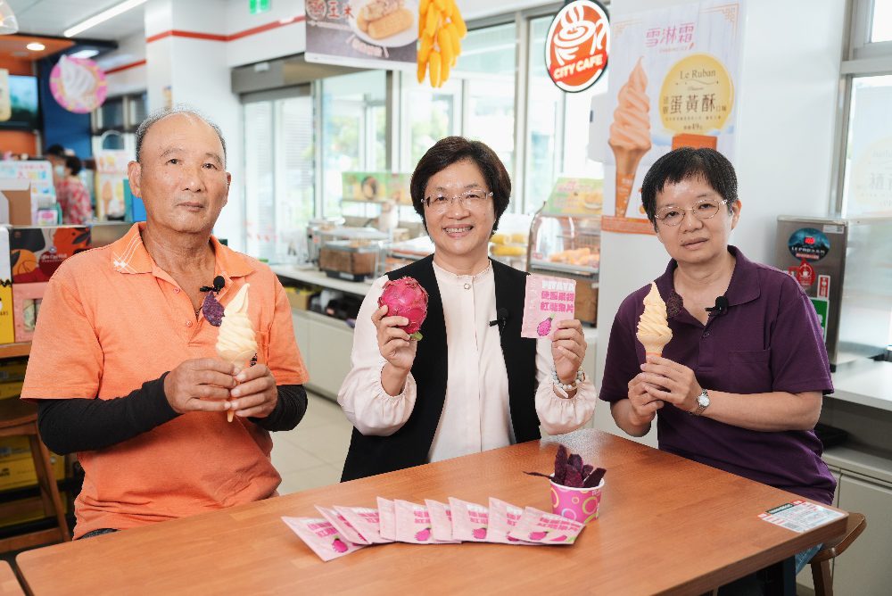 ▲7-ELEVEN和縣府合作,買霜淇淋即可免費紅龍果乾一份。(圖/彰化縣政府)