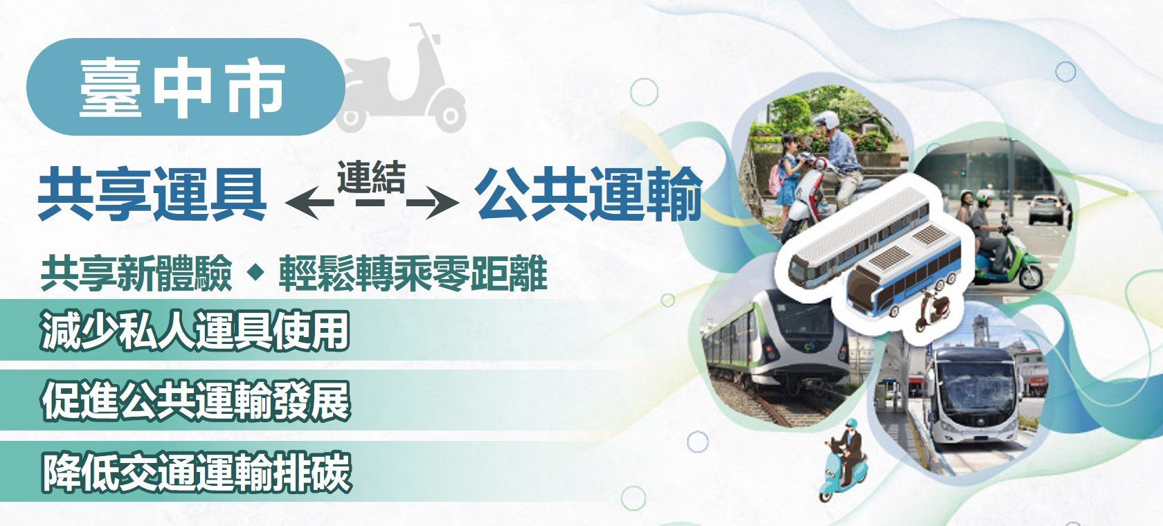 推動低碳交通、落實「2050淨零排放」願景,台中市政府積極爭取交通部運輸研究所的支持,自10月3日至11月30日試辦共享運具連結公共運輸示範計畫,成為全國首個獲推薦參與的城市。台中市政府交通局長葉昭甫表示,選定鄰近捷運、台鐵及社區密集的烏日區三和里、榮泉里、湖日里(捷運高鐵台中站周邊),以及北屯區舊社里(捷運北屯總站周邊)試辦,設置共享機車專用停車格,發放騎乘優惠券,鼓勵市民及旅客享受無縫轉乘大眾運輸的便利選項。