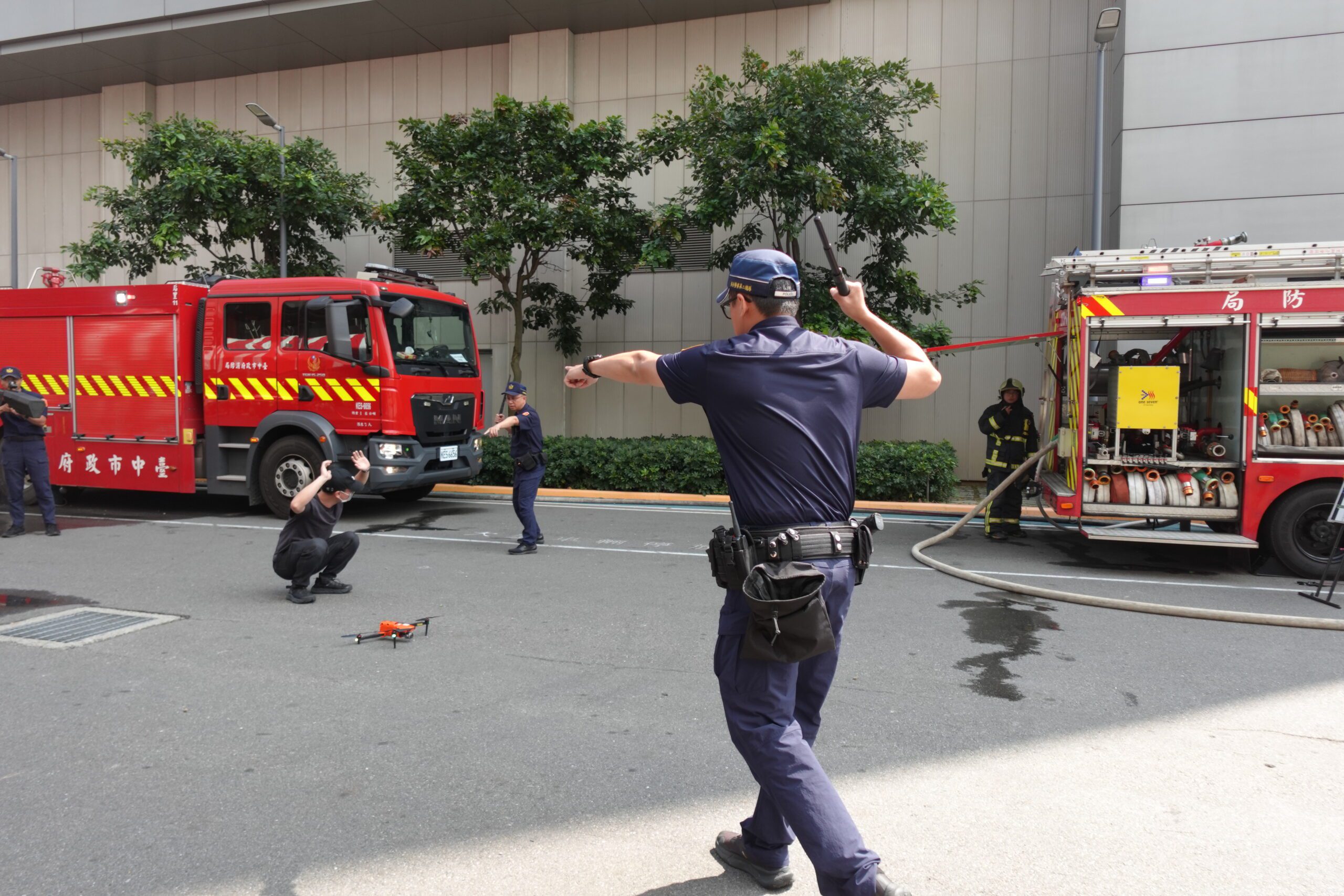 為強化市府與中部科學園區聯繫機制及災害防救應變能量,台中市政府環保局今(3)日與國家科學及技術委員會中部科學園區管理局共同舉辦「114年度中部科學園區毒性及關注化學物質災害防救(含疏散避難)演練」,演練情境設定為后里園區內台灣美光記憶體股份有限公司發生地震後遭遇不明人士操作無人機攜帶汽油彈襲擊,導致火災及毒化物洩漏等複合性災害事故,共動員10個單位,參與演練人員約100人,演練過程詳實逼真。