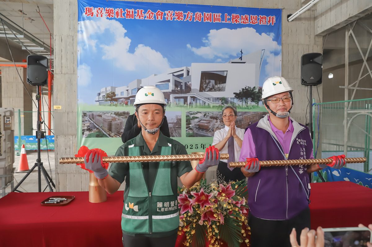 因為有愛的支持「喜樂方舟園區」自106年開始籌備,歷經三千多個日子,走過募款艱難、材料成本高漲與人力短缺等重重挑戰,今日迎來上樑儀式。這不僅象徵建築主體結構完成、工程將邁入最後施工階段,更代表對建築安全與未來服務的祝福與祈求。