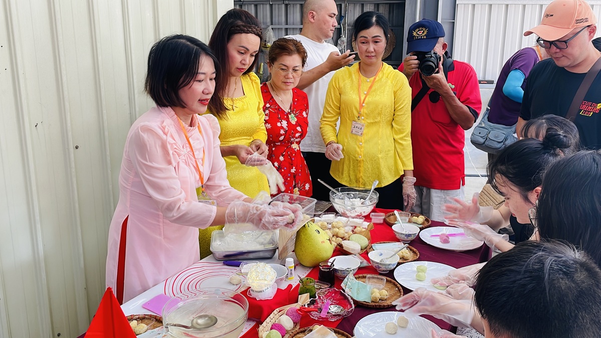 此外,現場還飄散著濃濃的異國香氣,是越南新住民潘秋玄帶領學員製作的椰香麻糬綠豆糕,這款風味獨特的越南月餅,新奇的口感與滋味,讓在場民眾驚喜連連。越南僑裔高階人才在臺總會理事長范氏伶說,感謝彰化縣政府對新住民的照顧及提供補助,也感謝移民署對新住民的關懷,透過動手體驗與品嚐美食,大家不僅認識不同文化,更在共享中感受中秋佳節「不一樣的月光」所帶來的驚喜與溫暖。