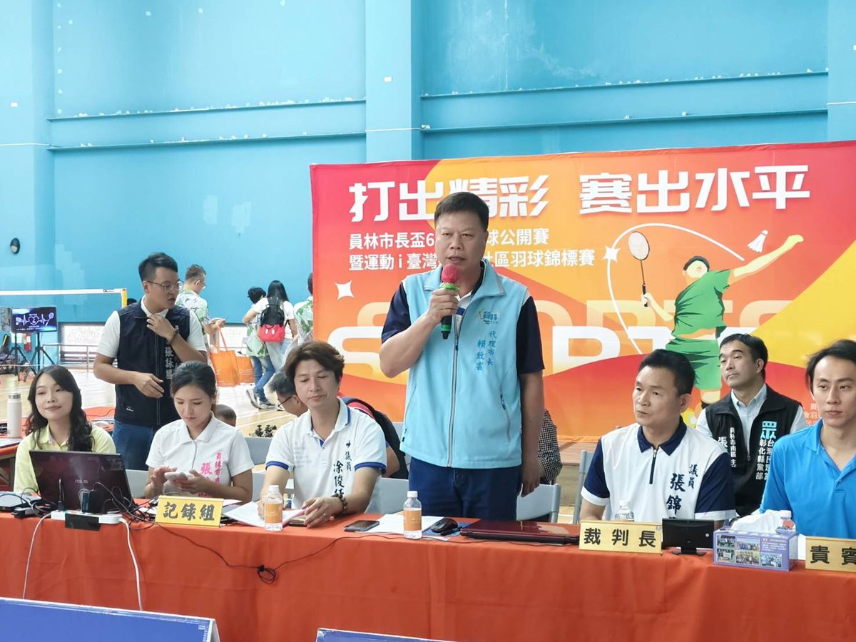 由員林市公所主辦的「第6屆市長盃全國羽球公開賽暨i臺灣計畫親子、社區羽球錦標賽」今10/10(五)於彰南運動中心盛大登場!活動由員林代理市長賴致富主持,並邀請彰化縣政府秘書游筑凱、縣議員張錦昆、凃俊任、張雪如議員服務處主任張嘉龍、張欣倩議員秘書劉柔婕、教育處喬麗文科長、督學陳茂欽及多位代表及貴賓蒞臨比賽會場,為選手加油打氣。