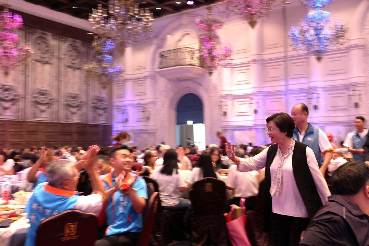 ▲賴代理市長逐一與受表揚伉儷及家人逐桌祝賀。(圖/員林市公所提供)