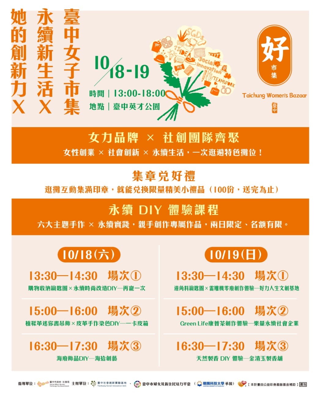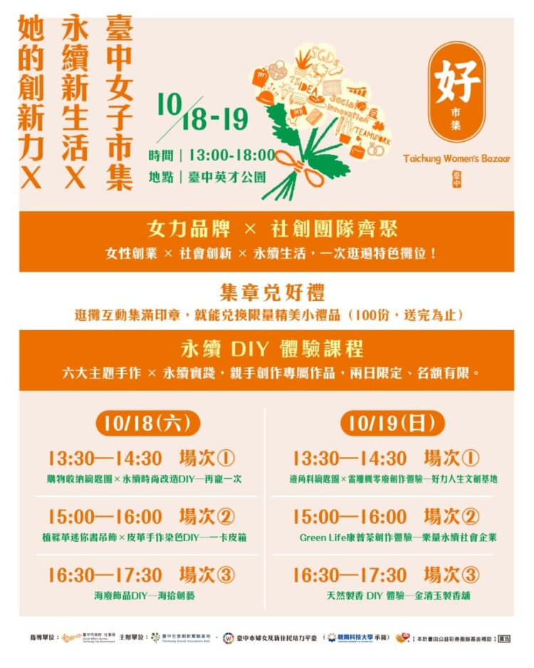 「她的創新力 × 永續新生活 × 臺中女子市集」活動海報。