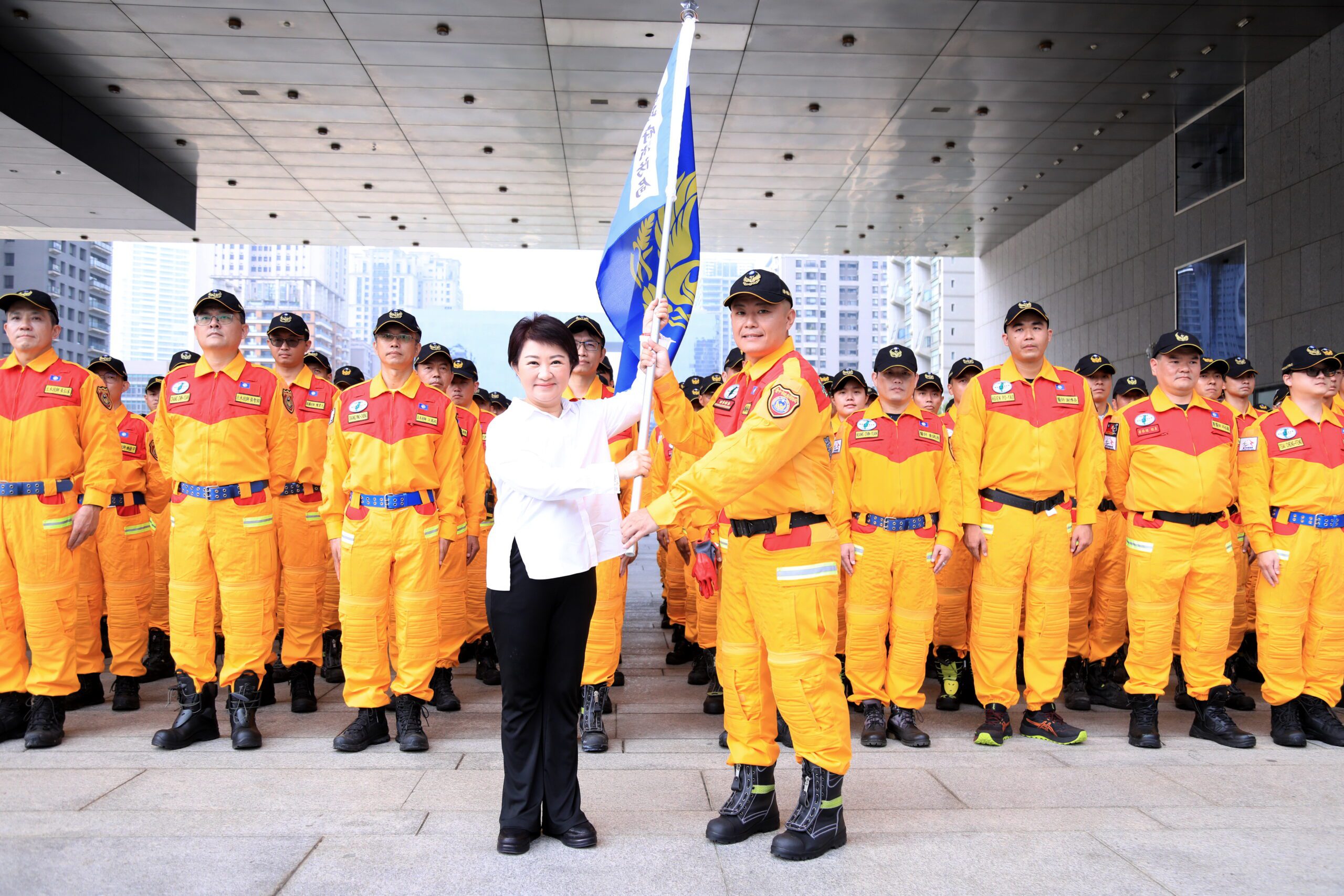 台中市政府今(15)日上午於市政大樓府前廣場舉行「特種搜救隊重型隊伍能力分級檢測授旗儀式」,由市長盧秀燕親自授旗,勉勵全體隊員以最高標準通過重型搜救隊國際評測,展現守護市民安全、馳援國際救援的決心。