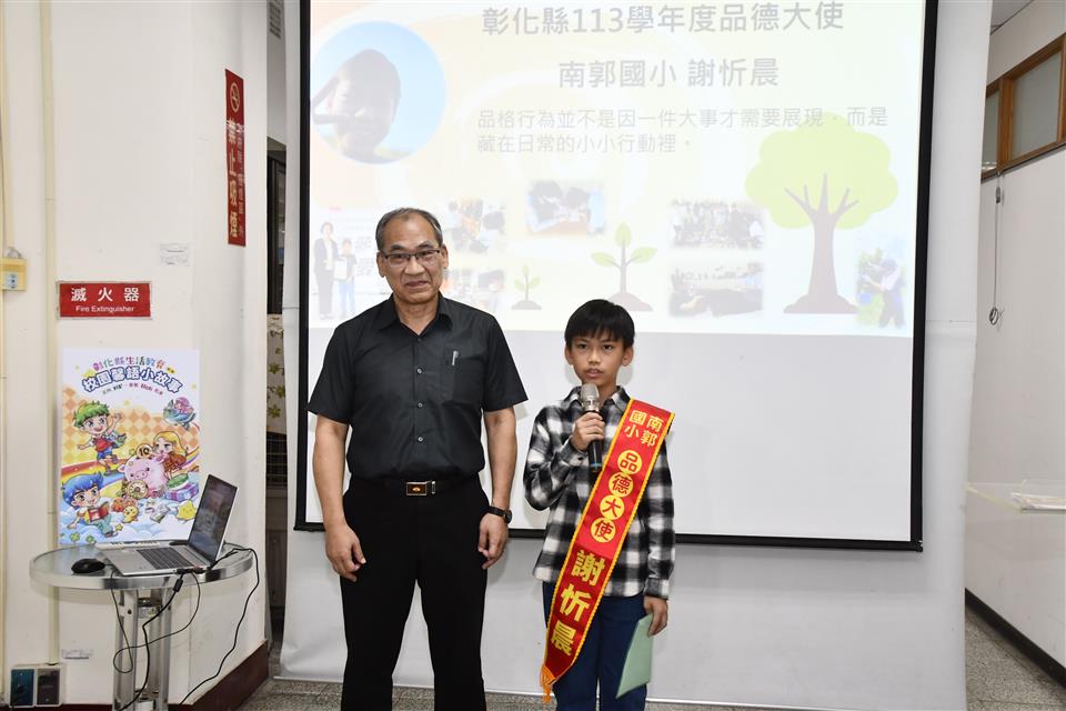 教育處長蔡金田表示,近年來彰化縣除持續推廣科技、國際、雙語之外,也重視推動品德教育,以大樹比喻孩子,品德教育就是大樹的根,希望能夠培養有能有德的孩子。因此在111年制定品德教育白皮書,也陸續成立品德教育輔導團,有系統地推動品德教育,把每一個月的第二週設為品德教育週,辦理品德特色學校,選拔品德大使。今年也推動《校園馨語小故事》第1冊電子書,內容主要是針對中高年級學生,目前點播率也達到1萬3,000人次,未來也規劃陸續推出第2冊至第4冊,共40個單元,內容融入最新的SEL社會情緒學習,以及社會責任、人際溝通、人際關係等,希望培養孩子具有良好品德。
