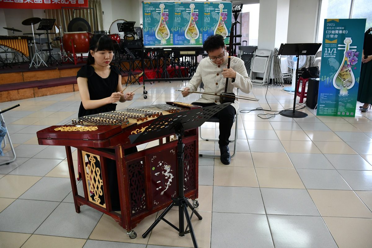 ▲揚琴演奏員張珮瑩(左)與二胡演奏員江子逸進行彩排。(圖/記者蕭麗鳳攝)