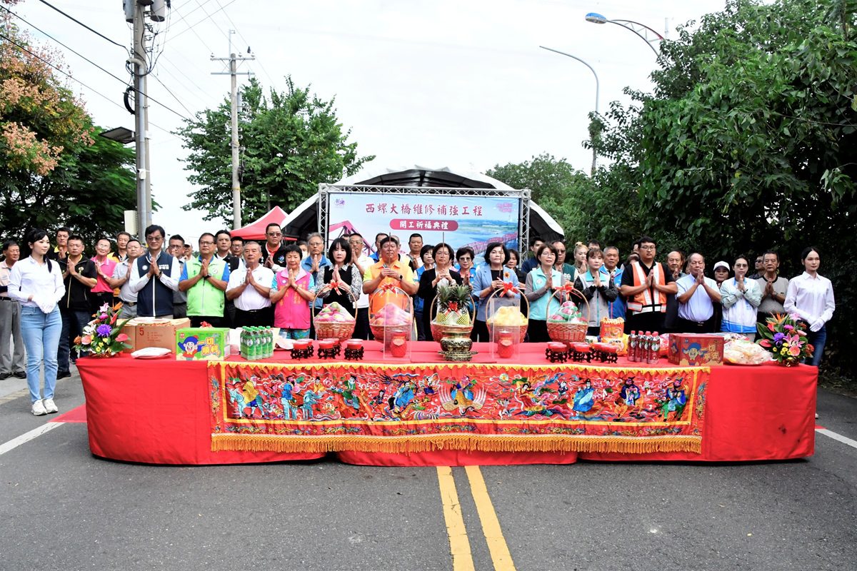 為祈求「西螺大橋維修補強工程」施工順利圓滿,彰化縣政府今(27)日上午於西螺大橋彰化端舉辦開工祈福典禮,彰化縣長王惠美邀請雲林縣長張麗善、交通部公路局代表、各級民意代表及地方仕紳共同見證開工時刻,象徵中央與地方攜手合作。