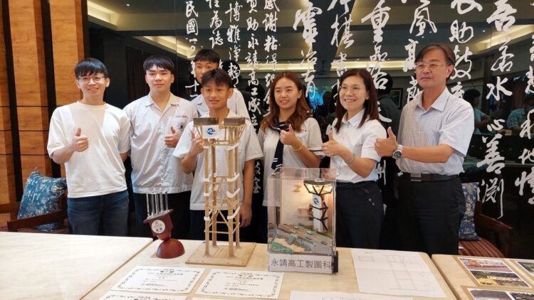 指導老師林茂宏表示,學生設計的模型是一個高塔,結合室內空間設計科另外製作出瞭望臺景觀模型,以表達高塔在生活中的應用。四位參賽同學中,林塬鑫以會考5A成績進入製圖科,李子承國中就讀私校,黃寶泓和黃慈堯兄妹從臺中市轉到永工就讀,各自負責立柱、強化結構、補強等等,還曾經被電鑽傷到送急診。如今得獎,一切的努力皆有好的成果。