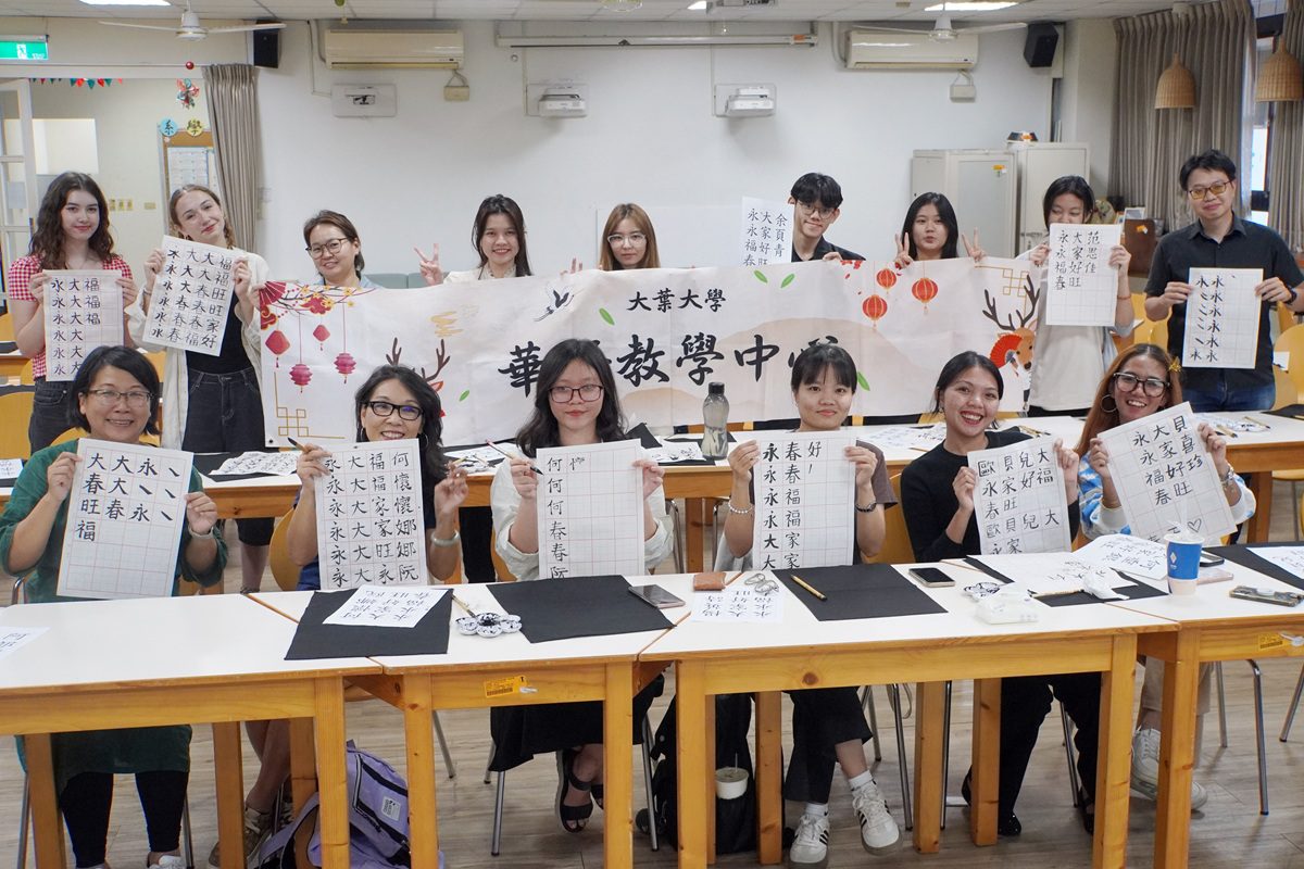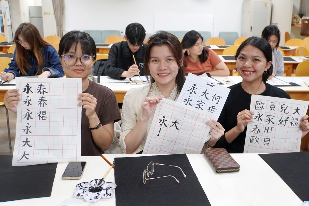 為引領國際學生感受漢字藝術之美,大葉大學華語教學中心舉辦「三美文化~體驗書法之美」活動,邀請設計學系教授鄧婉玲指導,帶領來自法國、印尼、越南、馬來西亞、菲律賓等國的學生親手揮毫,體驗書法藝術的魅力。