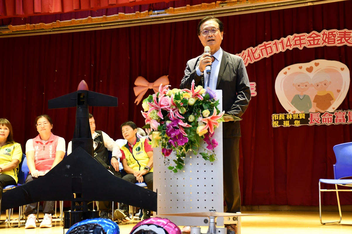 林市長稱讚受表揚的金婚夫婦說,能攜上走過半個世紀,真的是前世修來的福份,學會相互尊重、相互體諒應該是夫妻能夠長長久久的不二法門;他同時也強調,也要同時一起保持健康,才能繼續更長遠地相處下去。