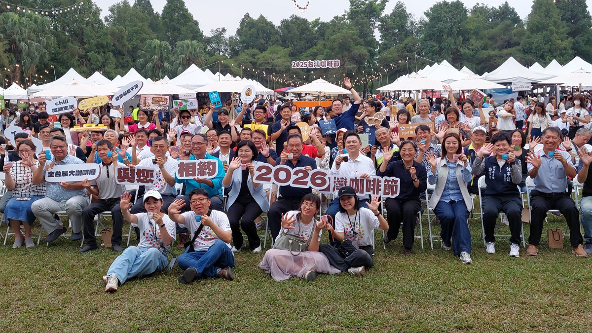 2025台灣咖啡節9日下午於雲林古坑綠色隧道劃下完美句點,活動期間吸引全台約上百萬人潮到雲林旅遊觀光,創下歷年新高,並創造逾五千萬元的商機,雲林縣長張麗善、金門縣副縣長李文良、古坑鄉長林慧如及出席的貴賓們共同舉杯感謝,宣告為期五天的活動圓滿落幕。