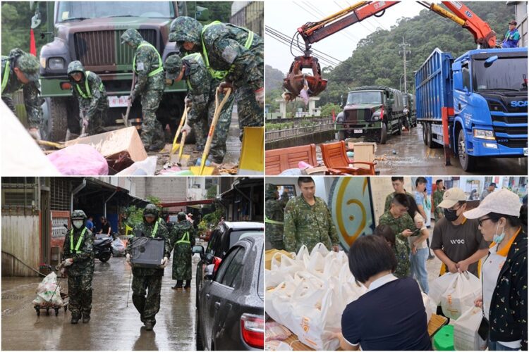 陸軍第三作戰區副指揮官孔乃德說明,到下午為止,國軍總計投入925人、化學兵清消車6輛、清消器48部,工兵12輛傾瀉車、2輛大山貓、4輛小山貓、13部抓斗車、4部照明尾燈。依據各里盤點,不分輕中重受災居民,目前等待清理家園1229戶,以每戶配置3位國軍人力,13日入夜預估能完成65%復原進度。