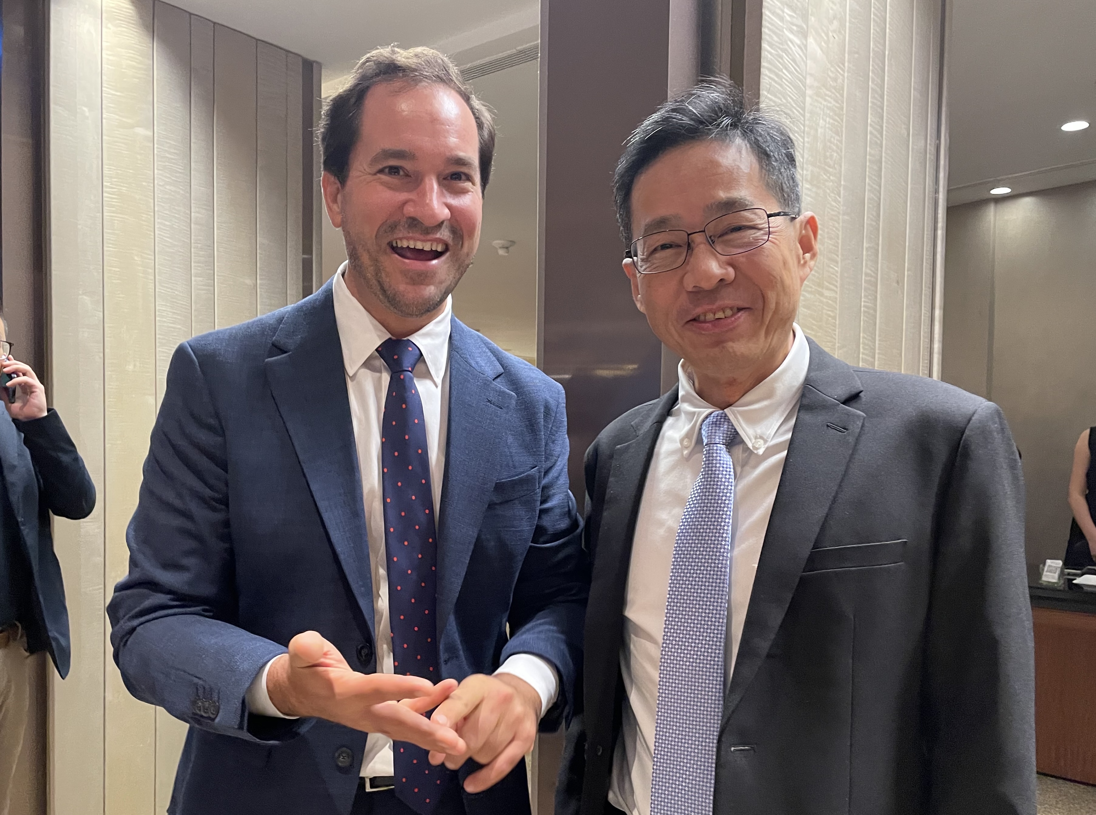 張局長表示,台中市政府與比利時台北辦事處情誼深厚,去年盧市長特別邀請馬徹處長參與台中購物節比利時篇宣傳廣告拍攝。作為歐洲唯一的國家代表,馬徹處長拍攝的影片成功讓市民對比利時的文化及美食留下深刻印象,播出後獲得熱烈迴響,也是打造2024台中購物節消費登錄金額累積破353億元的幕後推手之一,今年盼能持續深化雙方交流合作,共締友好連結。