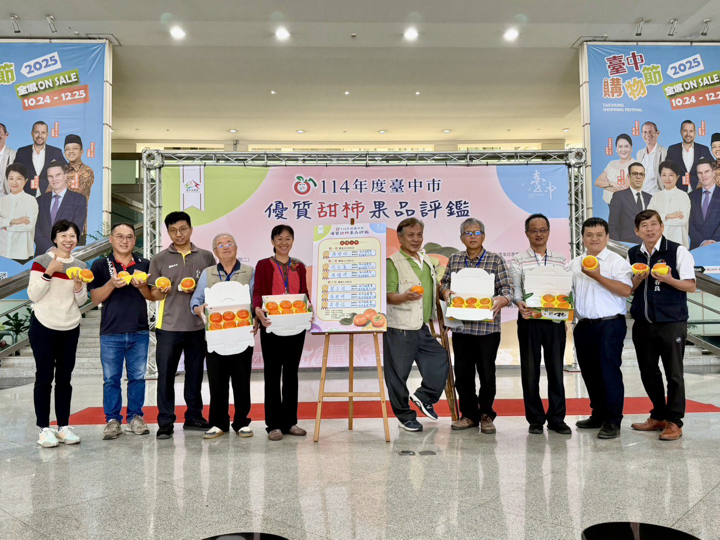 台中市政府農業局為推廣中市優質農特產品,提升甜柿品質及消費者食用安全,輔導和平區農會於今(18)日在台中市政府陽明市政大樓1樓大廳,舉辦「114年度台中市優質甜柿果品評鑑活動」,計有60組產銷班農民報名參賽,由和平區陳煌明勇奪冠軍,成為今年度的甜柿達人。