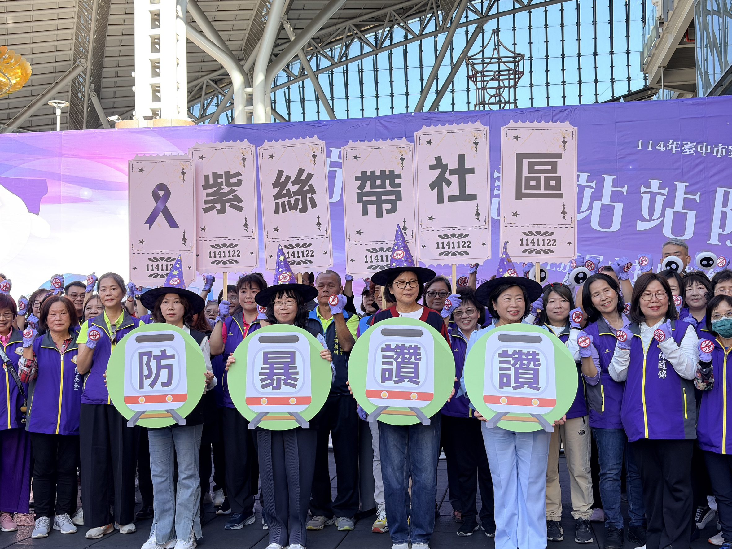 台中市家庭暴力及性侵害防治中心今(22)日在台中驛鐵道園區舉辦「防暴讚讚~站站防暴2.0」性別暴力社區初級預防聯合成果展,全國首創邀請社區站上防暴舞台,以表演搭配口號,傳達「防暴零容忍」;衛生福利部保護服務司司長張秀鴛擔任評審,選出最響亮的防暴金句,展現社區推動防暴的創意和決心。