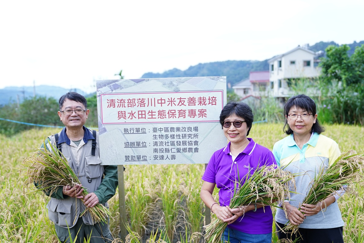 臺中農改場表示,「清流部落川中米友善栽培與水田生態保育專案」為跨接公、私部門與部落農友的合作專案,期望透過本專案維持經濟生產,同時兼顧保護生物多樣性、減少農藥與化肥使用,並落實推廣永續農業,達成部落循環創生發展的最終目標。