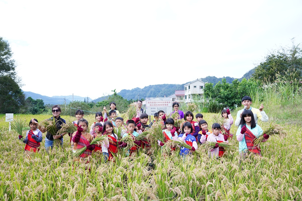 臺中農改場進一步說明,本年度的合作更納入生物多樣性研究所的資源,擴大跨域合作效益,生多所參與本專案的水田生態保育提供堅實的農地生態基礎資料,透過鳥類棲架的營造與生物資源的盤點,發現當地有豐富的蝶類、鳥類及哺乳類於水田環境共榮共存,後續將持續推動棲地營造與生態推廣。安達國際人壽則是繼110年贊助該場進行之「伊娜谷香糯米保種計畫」後,持續於今年贊助「清流部落川中米友善栽培與水田生態保育專案」,實踐企業社會責任並投入原鄉部落農業的永續創生。本次活動亦結合「由農田到餐桌」與「生態農業」的食農教育課程,邀請仁愛鄉互助國小師生共同參與,體驗「小小生態調查員」、田間割稻、米飯品評及飯糰製作等豐富有趣的活動,透過實作讓部落學童親近土地、理解稻作文化,進而對在地川中米產業留下難忘而深刻的印象。