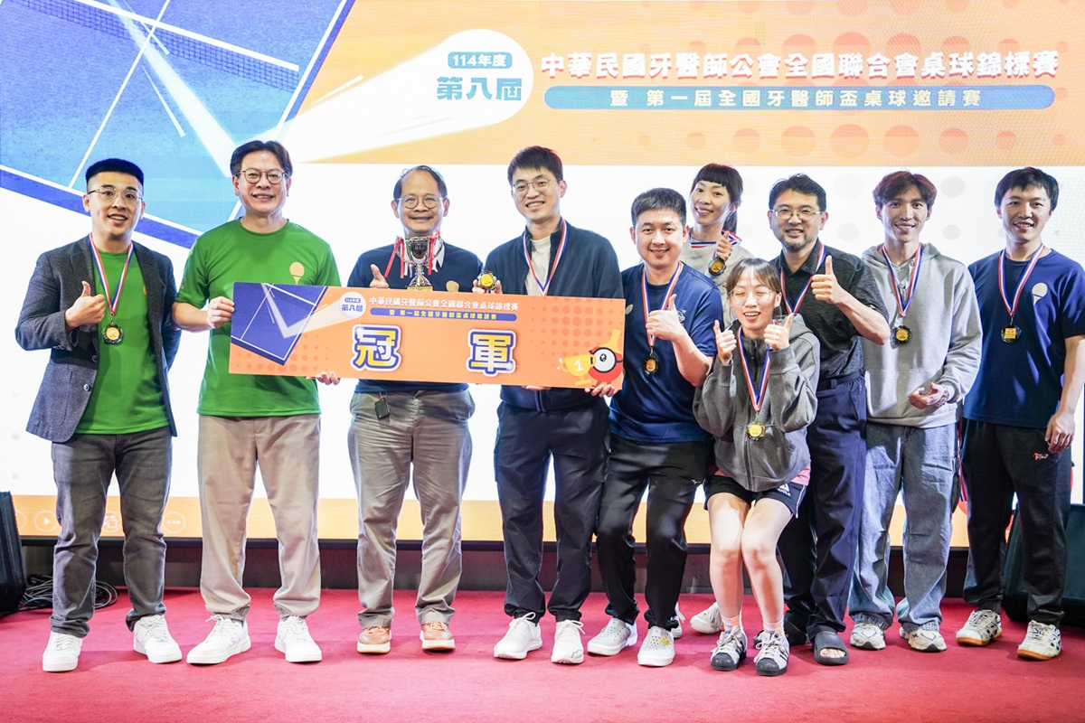 ▲彰基牙科部團隊榮獲2025全牙盃桌球賽冠軍,由大會主席陳穆寬總院長親自頒獎。(圖/彰基提供)