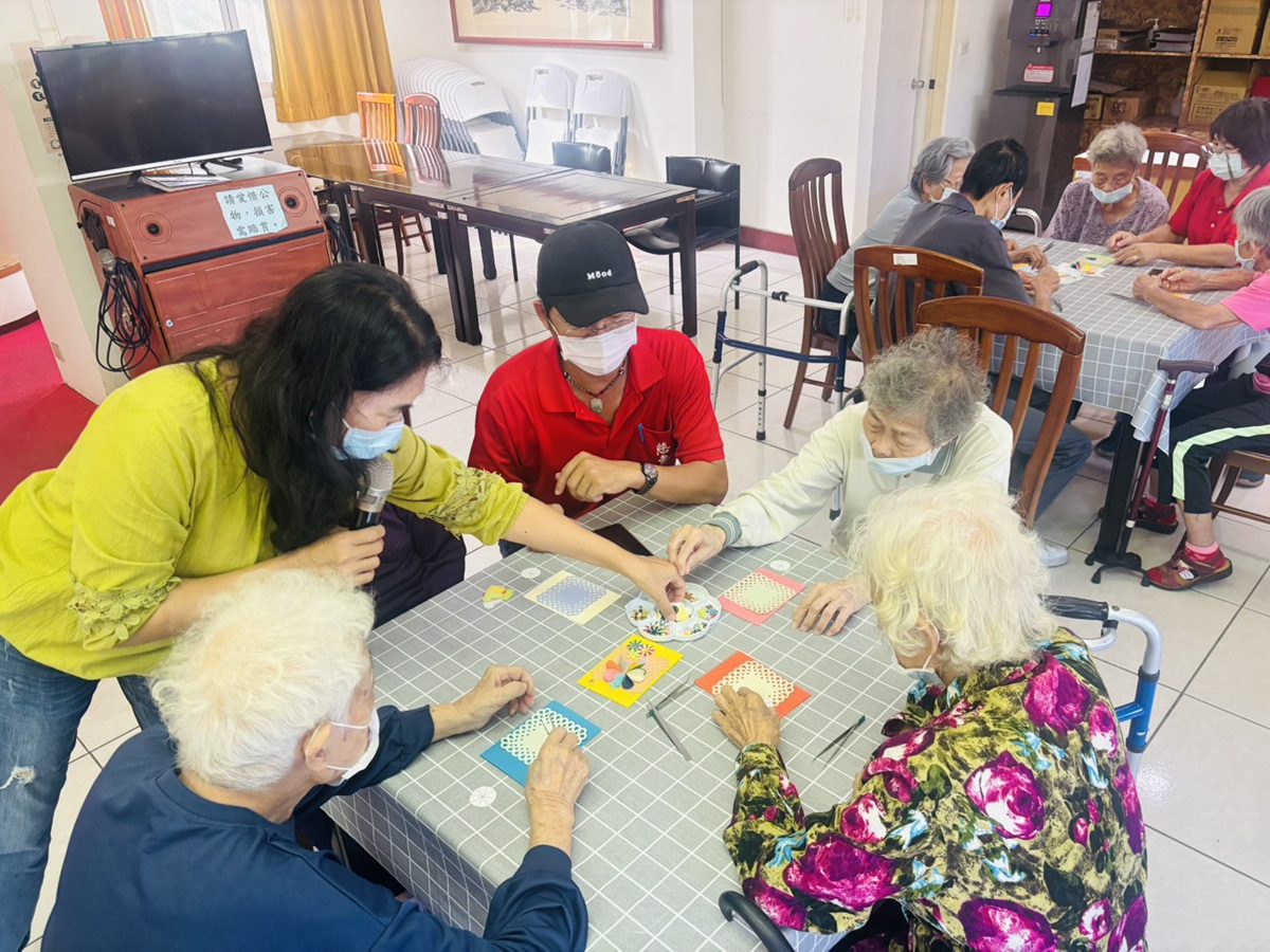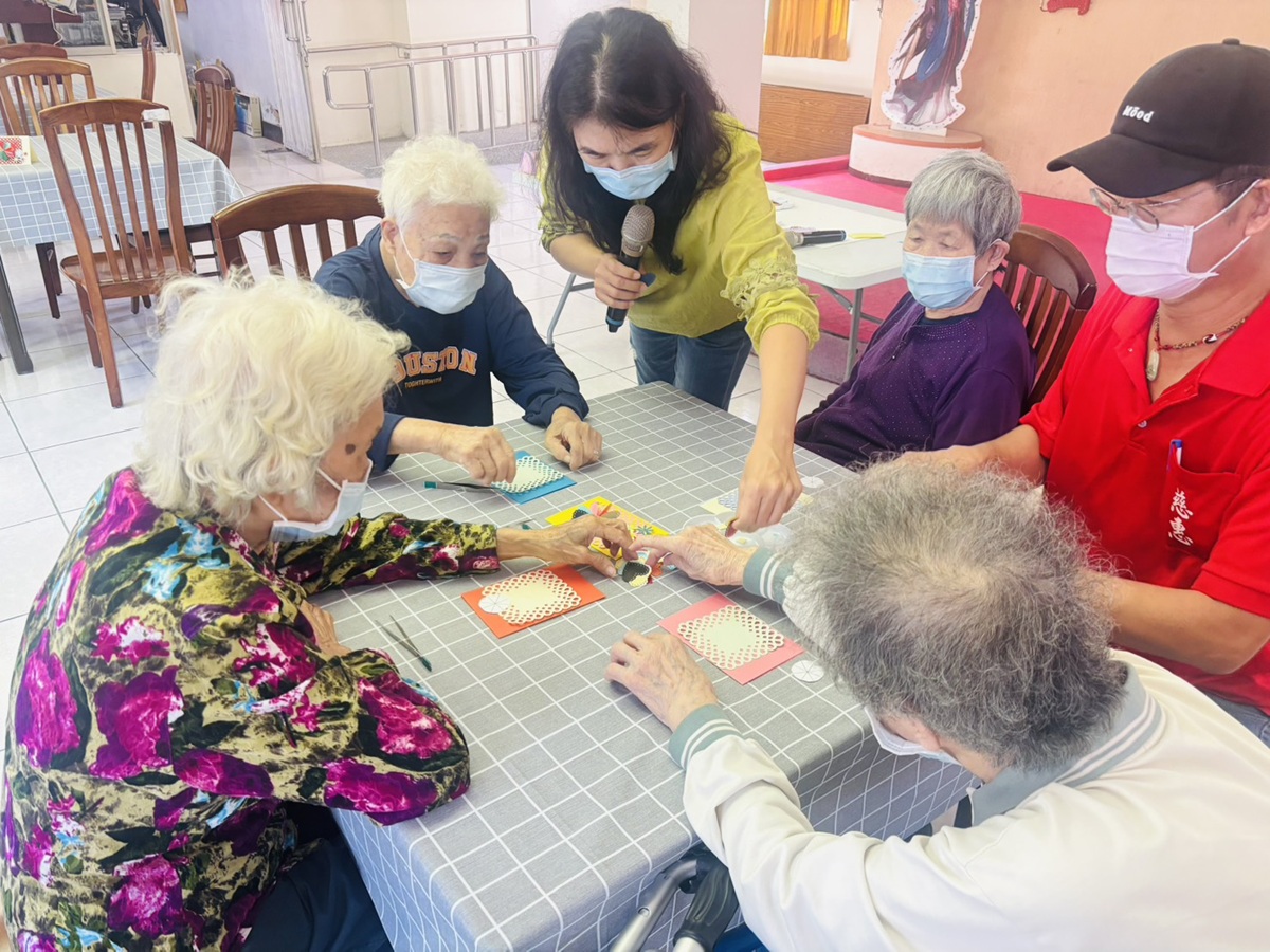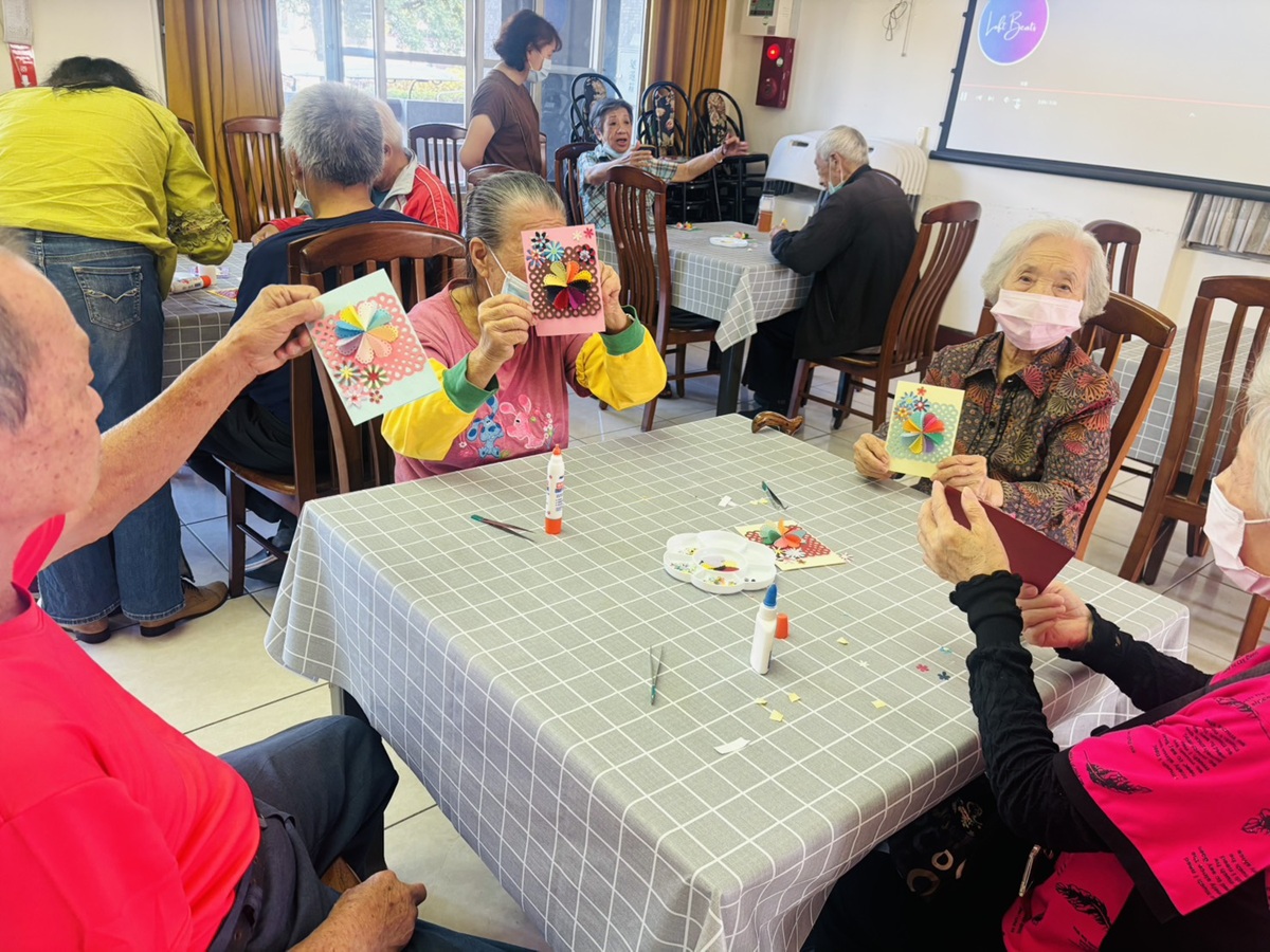 余社工師指出,此次活動亮點包含藉由蒙特梭利式教具設計,有重複性、操作性強、具引導性等來訓練長輩手部精細動作,如撕貼、抓取、位置配對。運用圖形辨識、步驟順序、對應能力來促進認知功能。最重要的是住民在參與、分享與鼓勵彼此完成作品之間的社交互動與正向情緒。