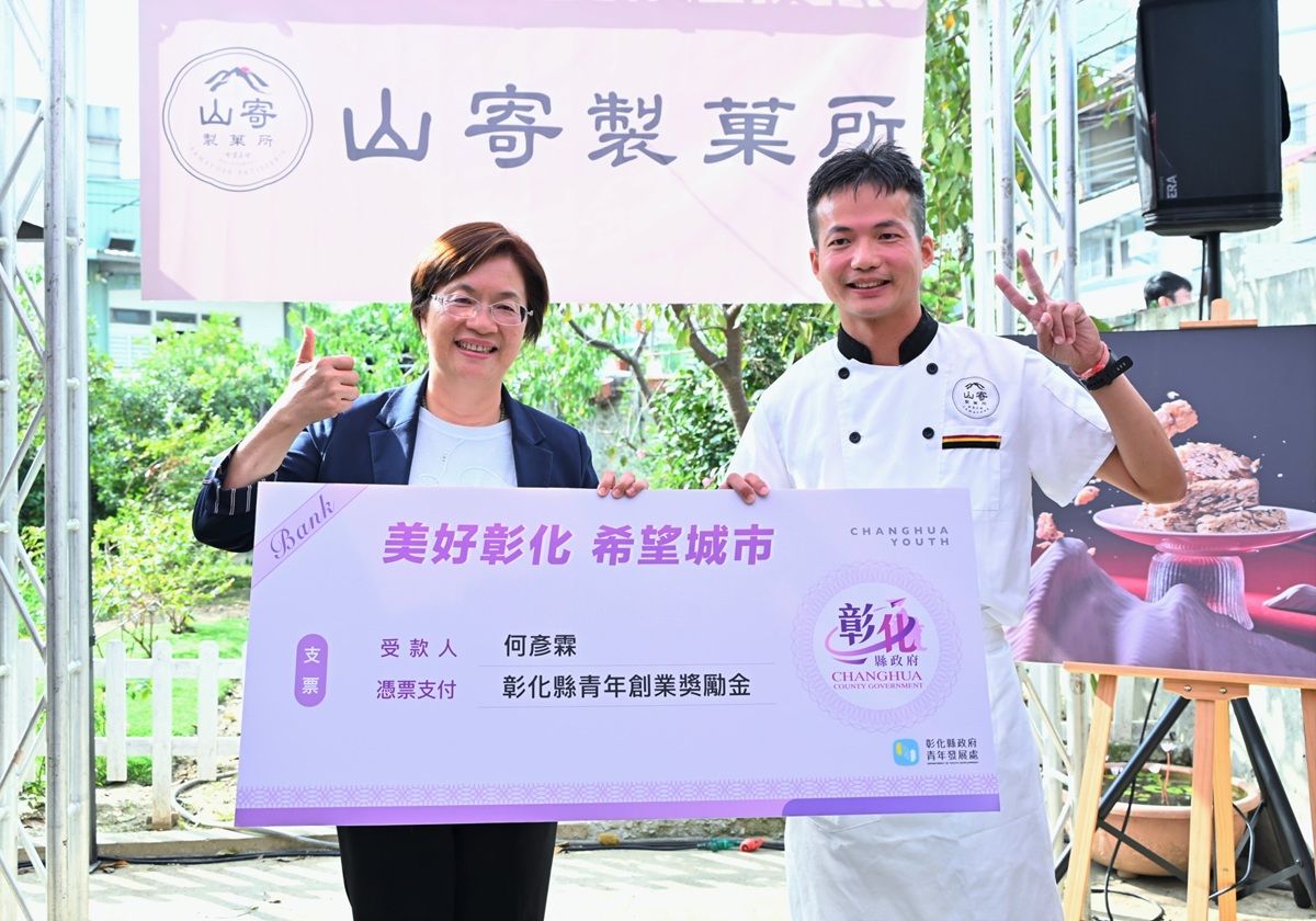王惠美表示,彰化很有料,只是過去太低調,隱身在社區的「山寄製菓所」由彥霖一手創辦,原本從事美髮用品業務的他,因喜歡烘焙且擁有烘培證照,平日就會手做甜點與親友分享,廣受好評。112年成功爭取到縣府青年創業補助,縣府也提供創業輔導,協助優化品牌形象,逐漸打響知名度,並榮獲112年彰化建縣三百年金好禮十大伴手禮殊榮。今年獲得經濟部商業發展署補助重新整修店面空間,以全新樣貌招待客人,提供更優質的消費體驗。