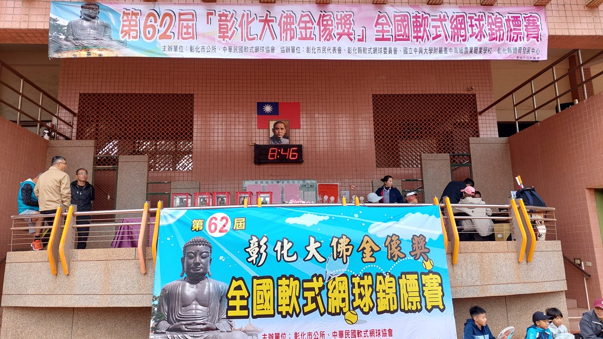 由彰化市公所主辦的第62屆「彰化大佛金像獎」全國軟式網球錦標賽,28日起連續三天在彰化縣立體育場健興網球場熱力展開,有來自全國各地共72隊、約7百多名隊員與教練參賽,分為機關團體組、國小男子組、國小女子組、社會男子甲組、社會男子乙組、社會男子丙組、社會女子甲組及長春組等8組進行鏖戰,激戰可期!