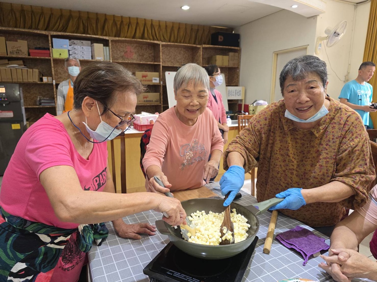 屈阿貞老師以豐富的教學經驗、親切的指導方式,逐步示範食材準備、攪拌技巧與造型塑作,讓長輩們在簡單易學的步驟中,體驗親手完成美味甜點的成就感。從健康順口的木瓜牛奶,到口感滑嫩的牛奶果凍,再到酸甜交織的蔓越莓雪花酥及柔軟香甜的雪花糕,每一道皆是透過長輩的雙手慢慢完成,視覺與味覺兼具。