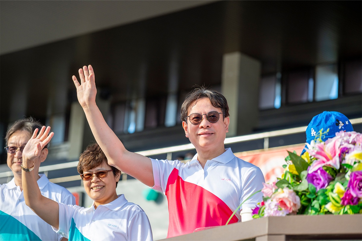 ▲陳穆寬總院長(中)在運動大會現場,為員工加油打氣。(圖/彰基提供)