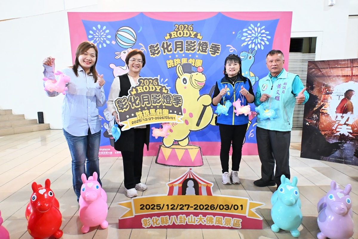 王縣長強調, 12月不僅有歲末演唱會, 12月14日晚間將在縣立美術館廣場點亮聖誕樹,當日下午4時開始有彰化縣音樂河社會福利協會辦理的園遊會及精彩舞台表演。還有大家期待的「2026彰化月影燈季」,將於12月27日點燈,一直展出至明年3月1日為期65天,以馬年為主題,結合RODY跳跳馬知名IP及特別嘉賓櫻桃小丸子、燈光秀、旋轉木馬,將大佛風景區裝扮成「跳跳馬戲團」。