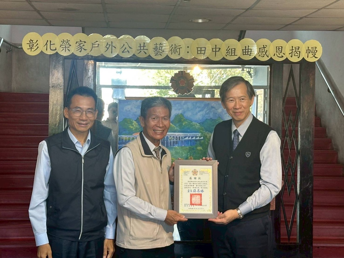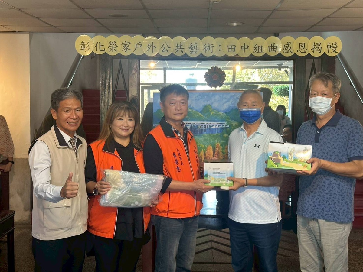 彰化榮家今日為戶外公共藝術彩繪畫作「田中組曲」,隆重舉辦感恩揭幔儀式,感謝熱心繪製的作者,也是彰化在地傑出的畫家曾永錫老師,以及慷慨捐助經費的住民林文照先生。
