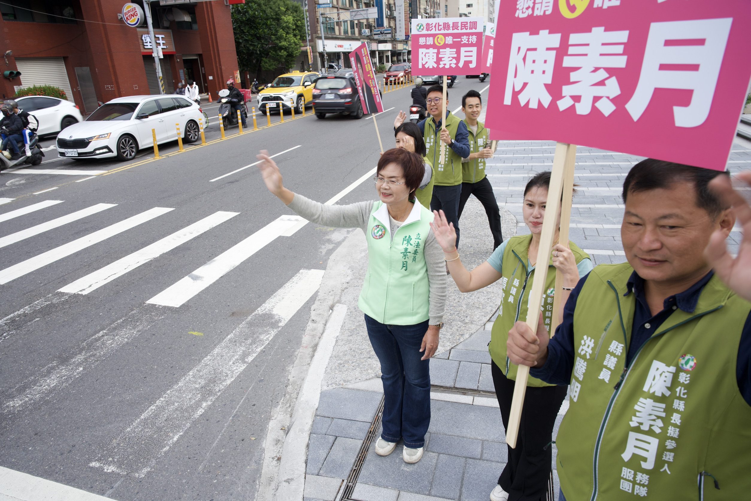 爭取民進黨彰化縣長提名的立法委員陳素月,今(3)日展現團結氣勢,偕同新芽連線五位縣議員楊子賢、洪騰明、張欣倩、藍駿宇與劉珊伶,前往彰化市八卦山牌樓路口及民生市場進行掃街拜票,積極爭取鄉親支持,力拚初選過關。