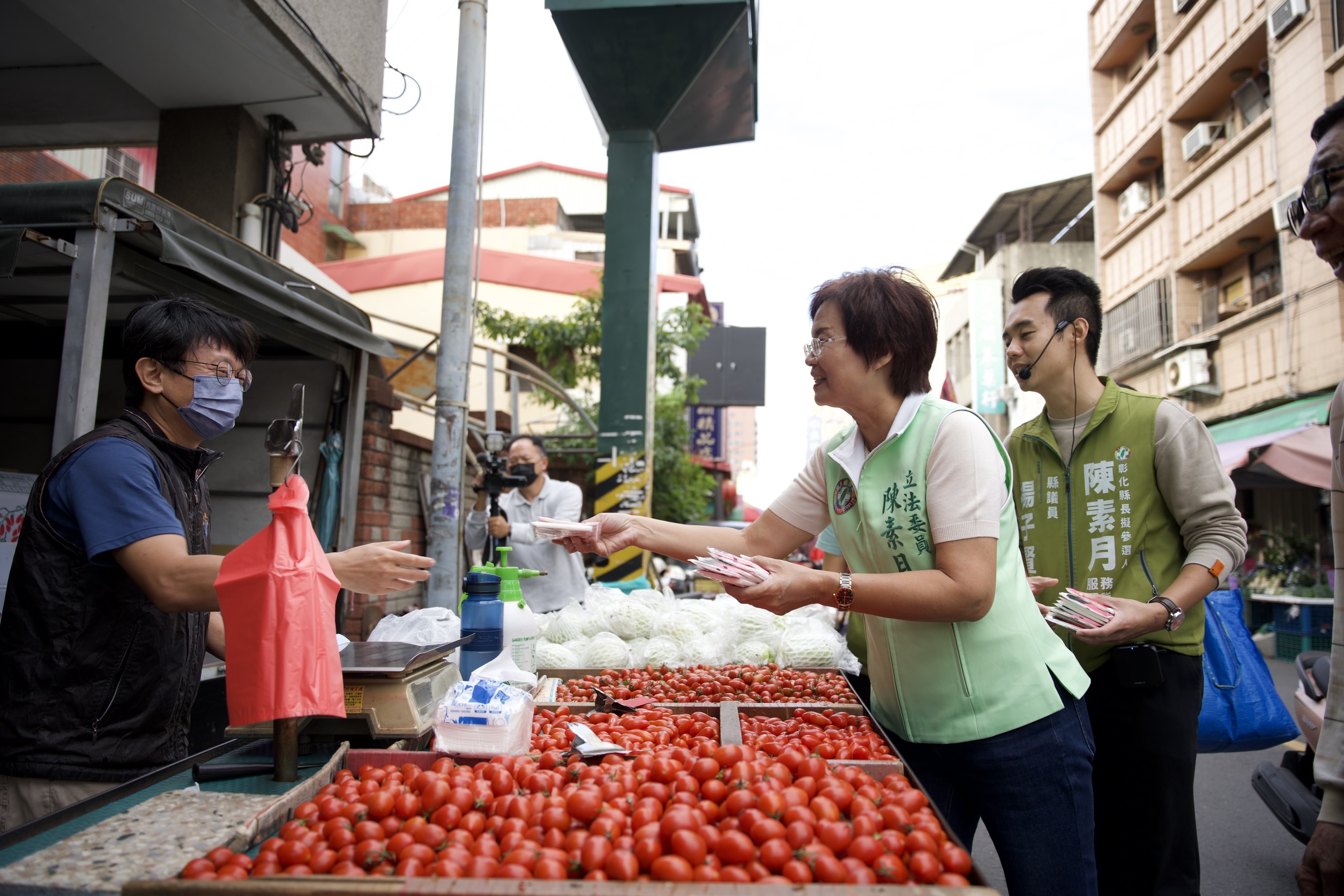 影音/爭取民進黨彰化縣長提名 陳素月母雞帶小雞市場拜票力拚初選過關